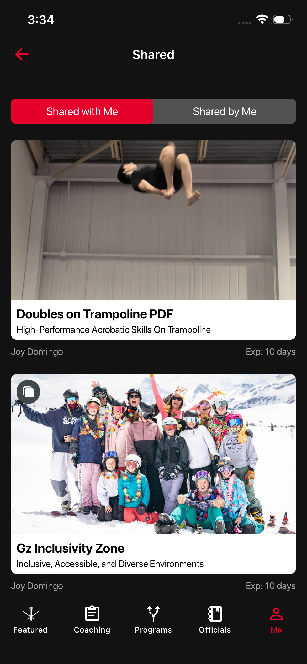 Shared content is under the My Account tab called Shared.