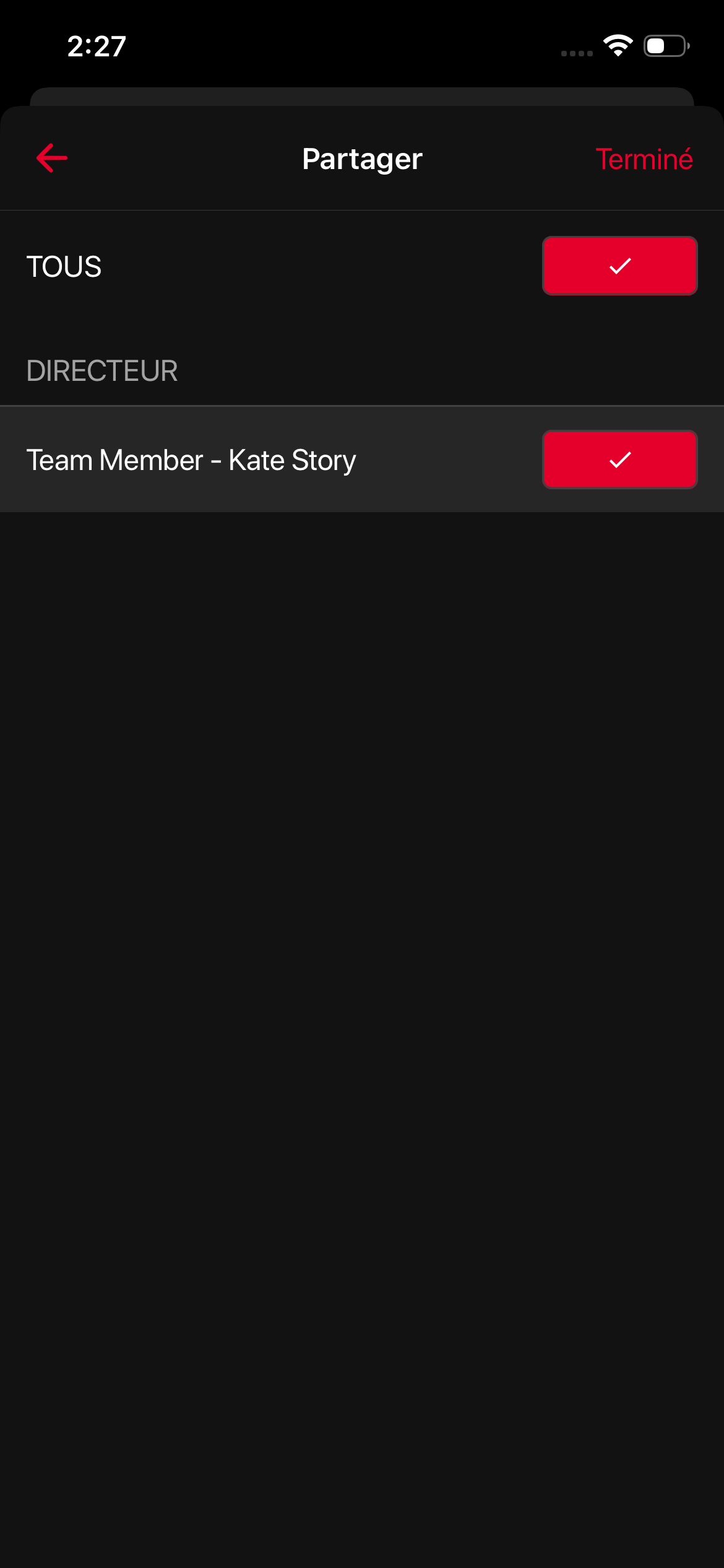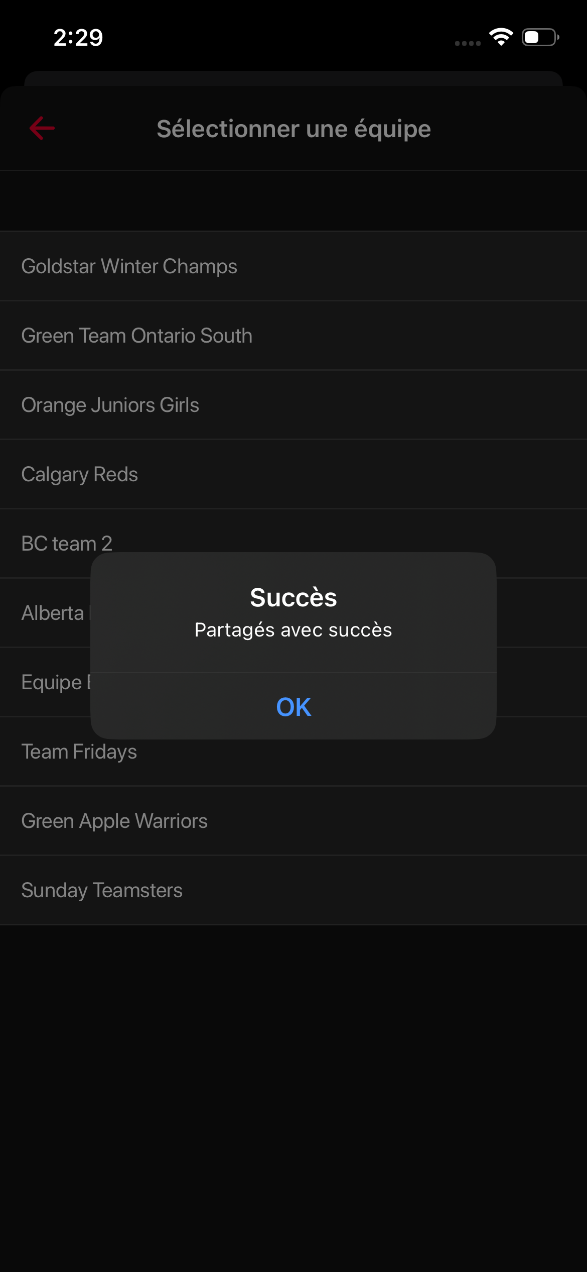 Sélectionnez l’équipe avec laquelle vous souhaitez le partager.
